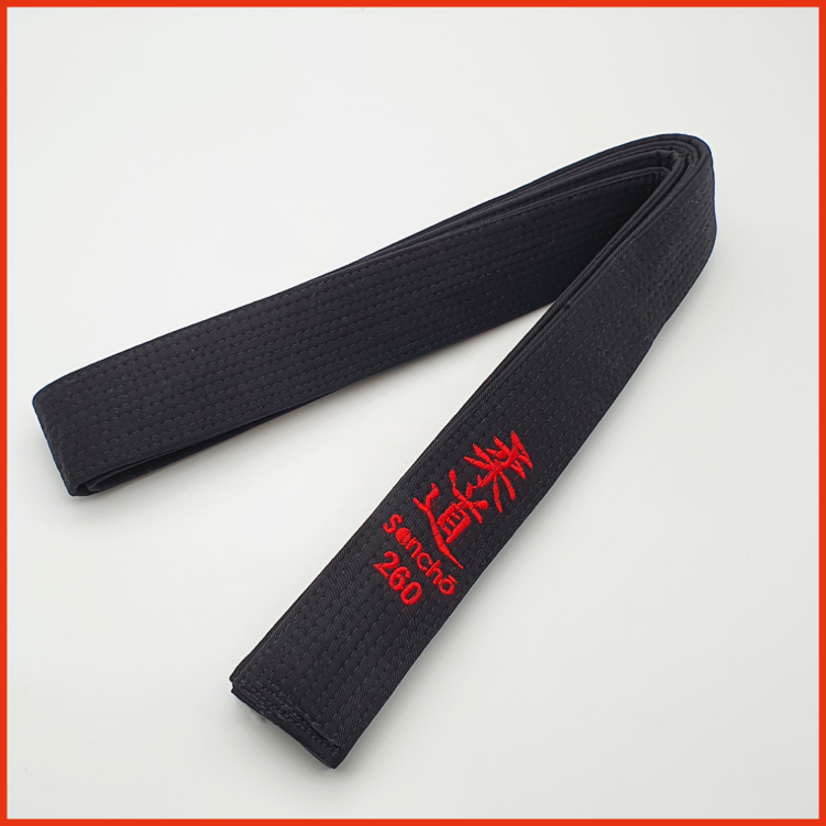 Der Schwarzgurt für alle DAN-Träger ist mit den japanischen Kanji „Judo“, unserem Logo sowie der Gürtellänge bestickt, wodurch ihm ein besonders edles Aussehen verliehen wird.