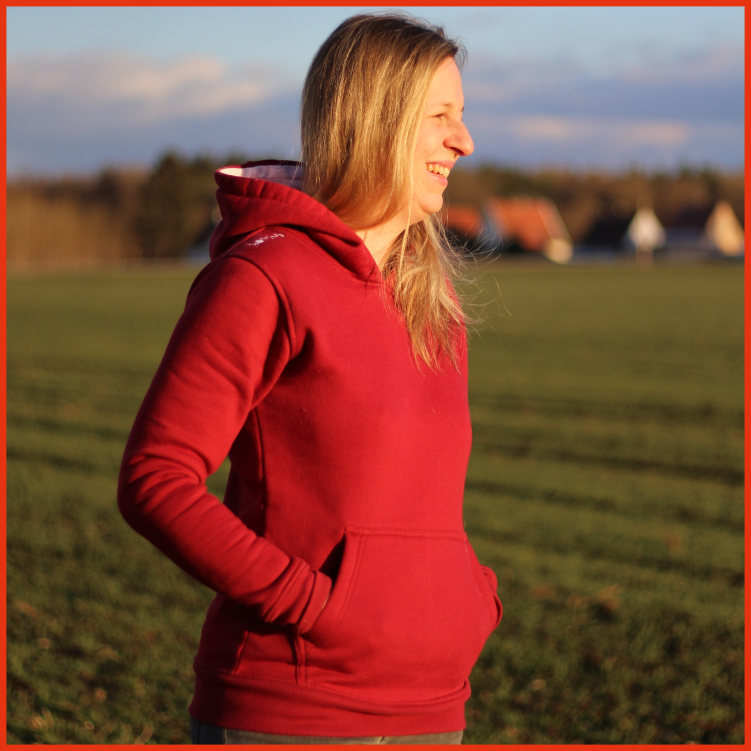 Kapuzenpullover burgunder – Judostoff weiß (Damenschnitt)